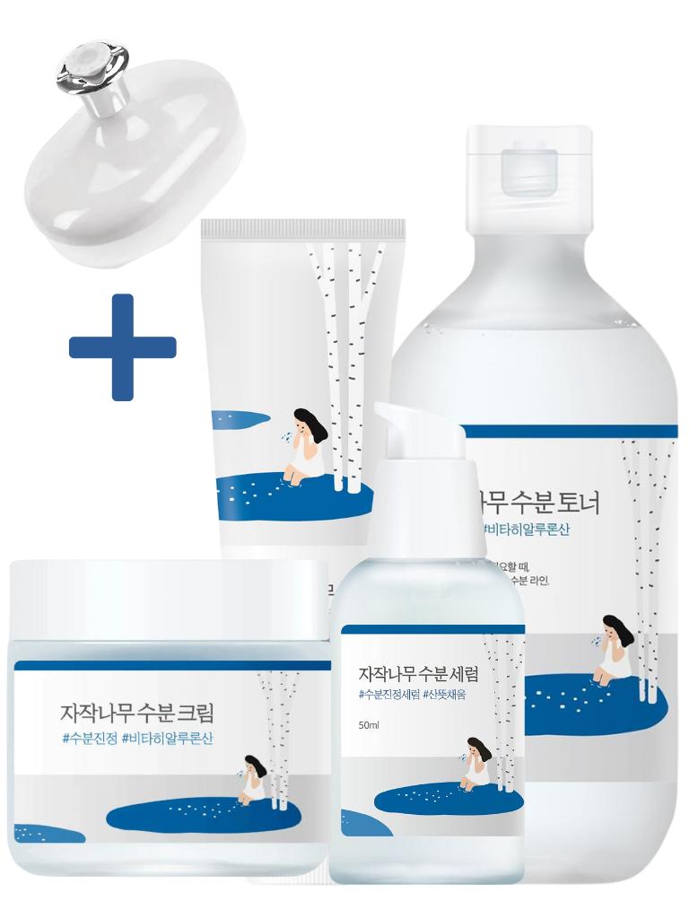 The ROUND LAB Birch Juice Hydration & Protection Pack combines the ultimate trio for deep hydration, barrier support, and sun protection. Featuring the Birch Juice Moisturizing Cream (80ml), Birch Juice Serum with SPF50+ PA++++ (50ml), and Birch Juice Moisturizing Toner (300ml), this set ensures your skin stays moisturized, soothed, and shielded against daily stressors. Perfect for sensitive skin, the alcohol-free and fragrance-free formulas deliver pure hydration powered by Birch Sap and Vita Hyaluronic Acid.