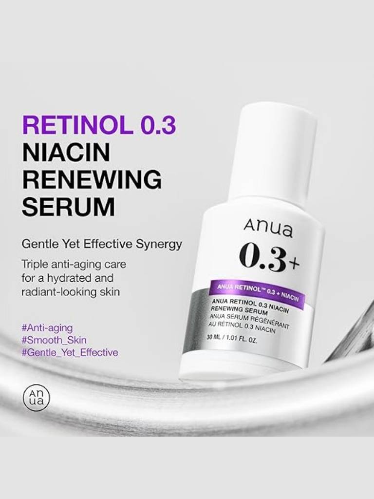 Meet your nightly glow-up: Anua Nano Retinol 0.3% + Niacin Renewing Serum. This advanced formula pairs nano-encapsulated retinol (0.3%) with niacinamide to visibly smooth texture, soften fine lines, and even tone—delivering results with less irritation thanks to slow-release technology.