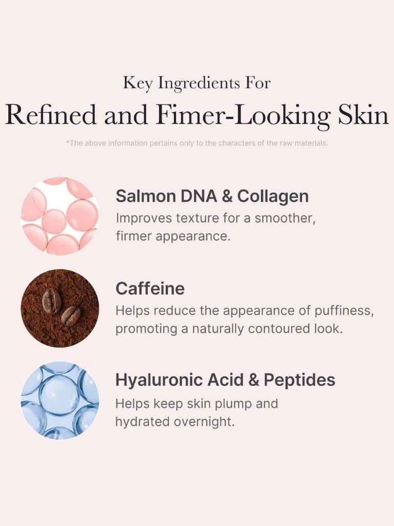 Powered by PDRN (Sodium DNA), caffeine, peptides & hyaluronic acid complex.
