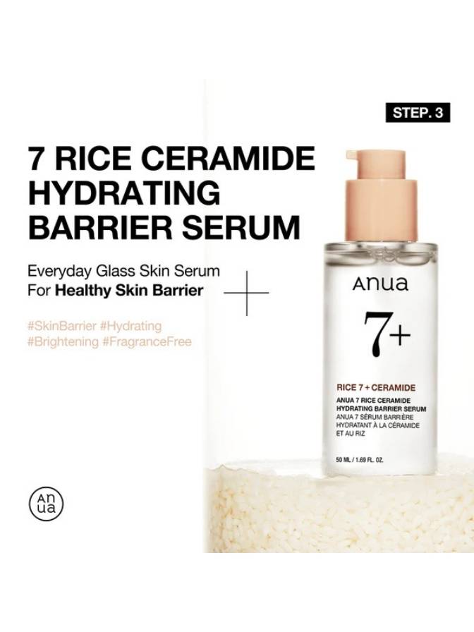 Barrier Repair : Rice Ceramide 7 Hydrating Barrier Serum strengthens your skin barrier, locking in moisture and protecting against dryness.