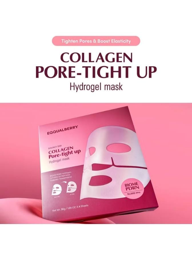 Experience instant firmness, hydration, and pore refinement with the Eqqualberry Collagen Pore-Tight Up Hydrogel Mask, a premium Korean hydrogel sheet mask infused with collagen, peptides, and pore-tightening botanical extracts. This unique hydrogel material adheres closely to the skin, allowing deeper delivery of active ingredients and leaving your complexion smoother, plumper, and visibly refreshed. Ideal for dull, tired, or enlarged-pore skin, this mask delivers spa-level results at home.