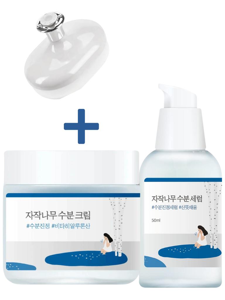 The ROUND LAB Birch Juice Hydration Pack combines the bestselling Birch Juice Moisturizing Cream (80ml) and Birch Juice Serum (50ml). Powered by birch sap and vita hyaluronic acid, this alcohol-free, fragrance-free set delivers deep hydration and skin barrier support. Perfect for sensitive and dehydrated skin types, it provides a refreshing, lightweight finish without irritation.