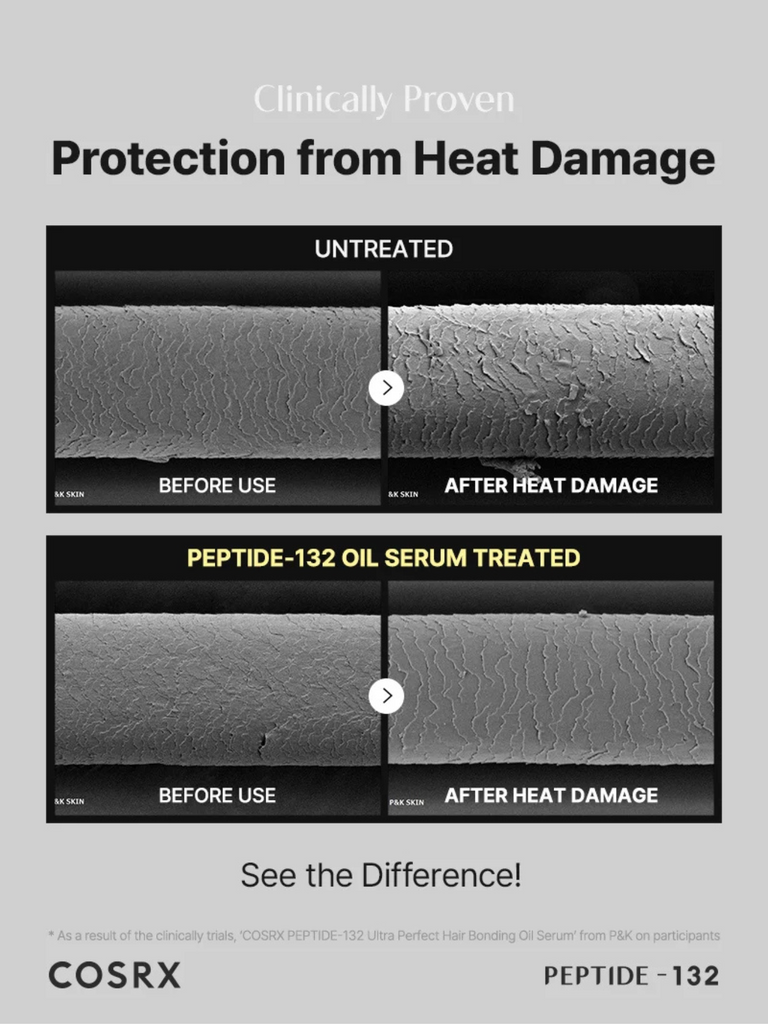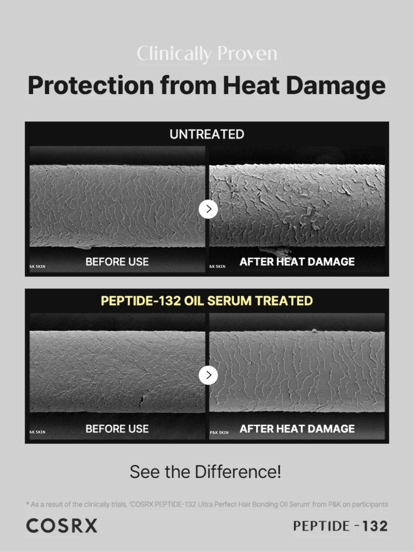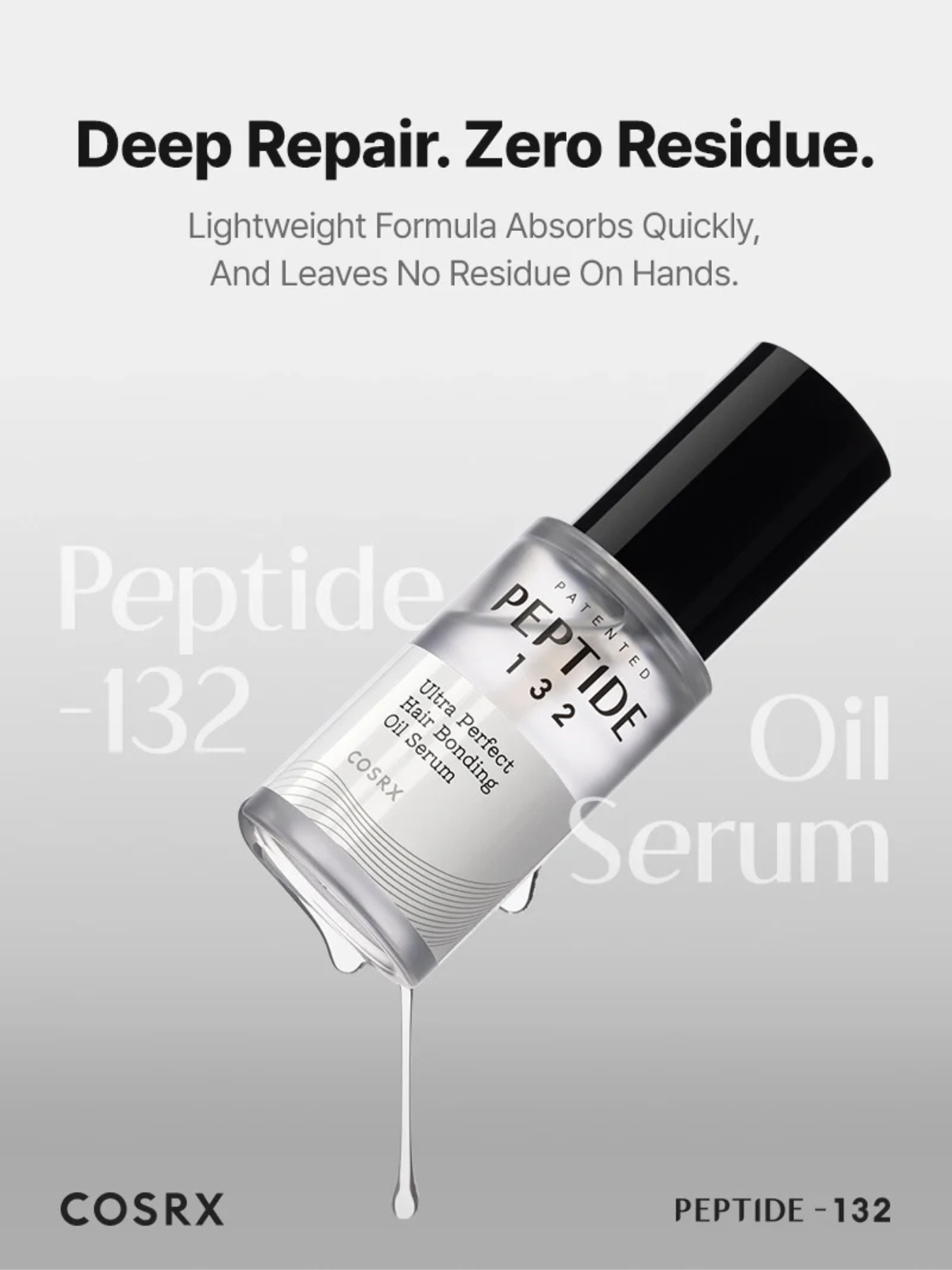 Revive your hair with the COSRX PEPTIDE-132 Ultra Perfect Hair Bonding Oil Serum, designed to repair, nourish, and protect damaged strands. Infused with peptides and lightweight oils, this serum helps restore shine, smooth frizz, and shield hair from daily stressors.