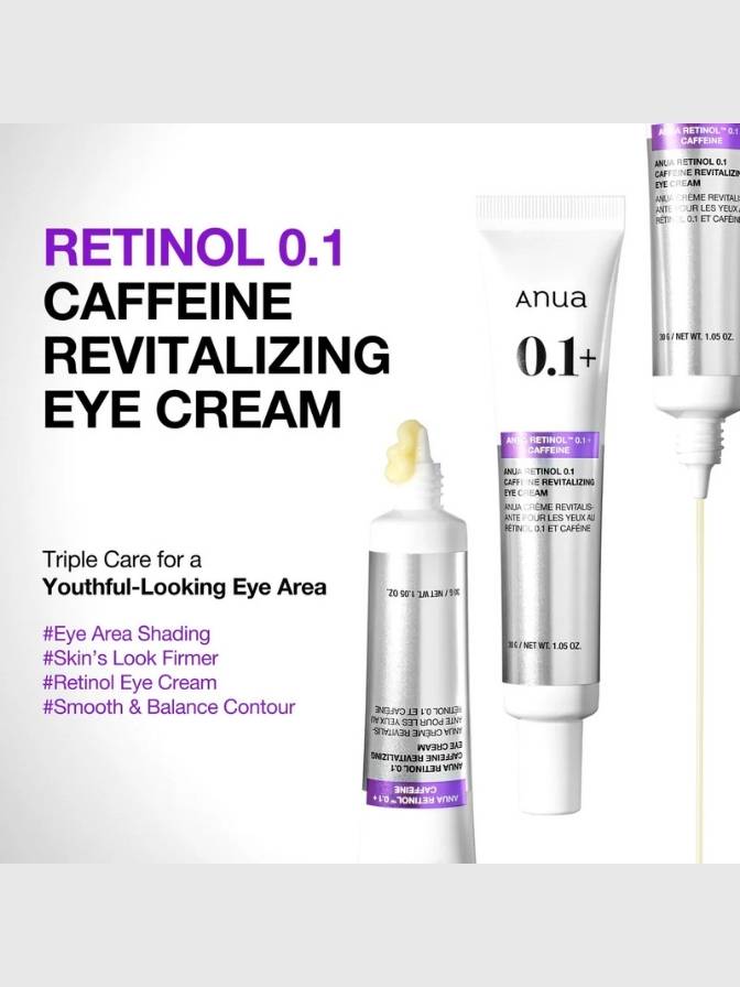 Retinol 0.1 Eye Cream with caffeine smooths fine lines, reduces puffiness, and revitalizes the delicate eye area.