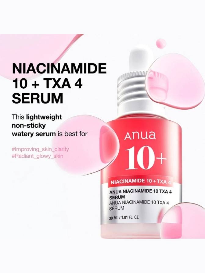 Niacinamide 10% + TXA 4% Serum targets hyperpigmentation, acne scars, and uneven skin tone for a visibly brighter complexion.