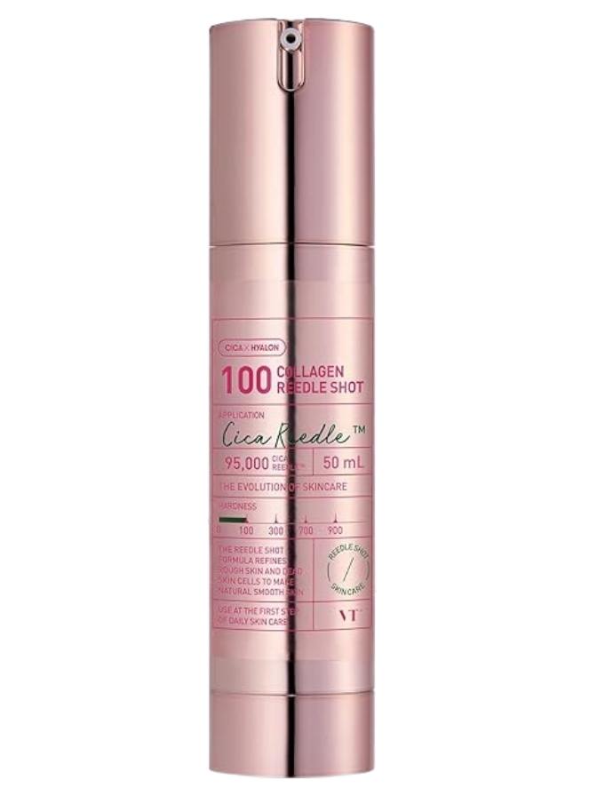 Apply 2–3 pumps of VT Pink Collagen Reedle Shot 100.